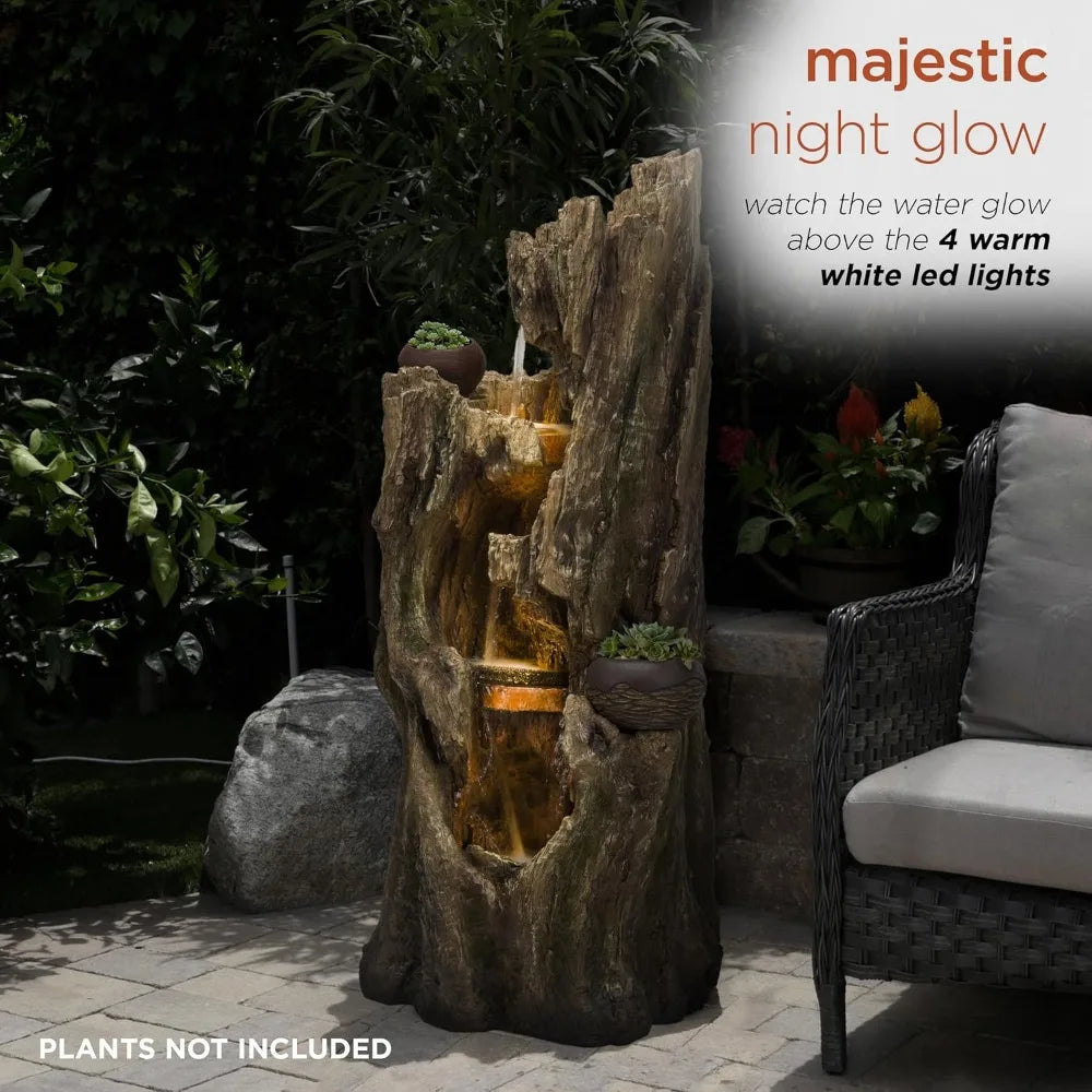 - Elegant LED Lighting: The integrated LED lights illuminate the cascading water, creating a magical ambiance during nighttime.