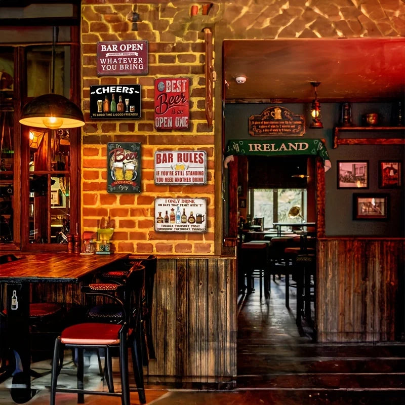 Whether you're hosting friends for a game night or simply enjoying a quiet evening, these vintage beer metal tin signs will add a nostalgic charm that is both inviting and stylish. Redefine your space with this exceptional decor set!