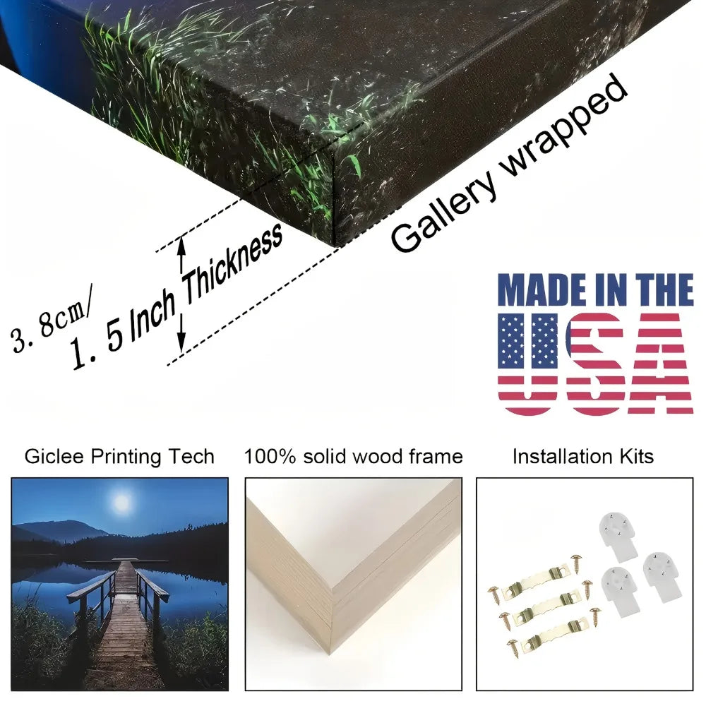 Crafted in the USA, this piece is mounted on a natural 1.5-inch pine frame that adds warmth and a touch of organic texture to your decor. The canvas surface offers rich color and subtle depth, making it a versatile focal point for living rooms, bedrooms, or offices.
