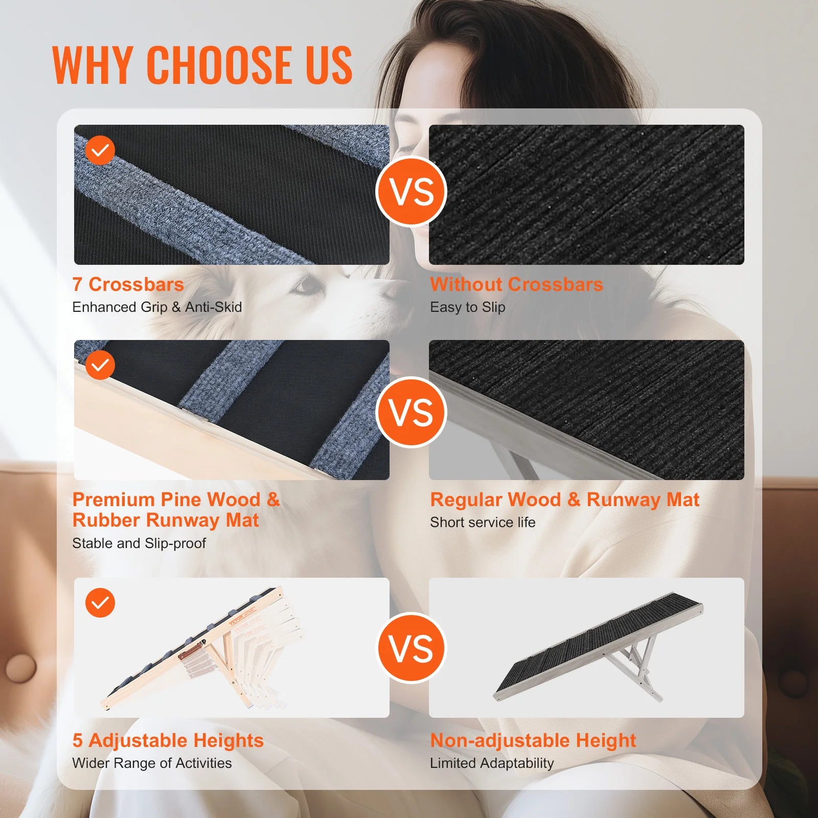 Folding Dog Ramp Anti Slip Adjustable Wooden Pet Ramp